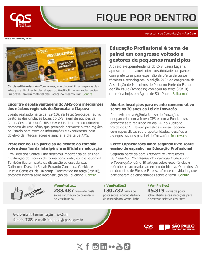 Evento realizado na terça (29/10), na Fatec Sorocaba, reuniu diretores das unidades locais do CPS, além de equipes da Cetec, Cesu, DI, Ugaf, UIE, URH e UP. Trata-se do primeiro encontro de uma série, que […]