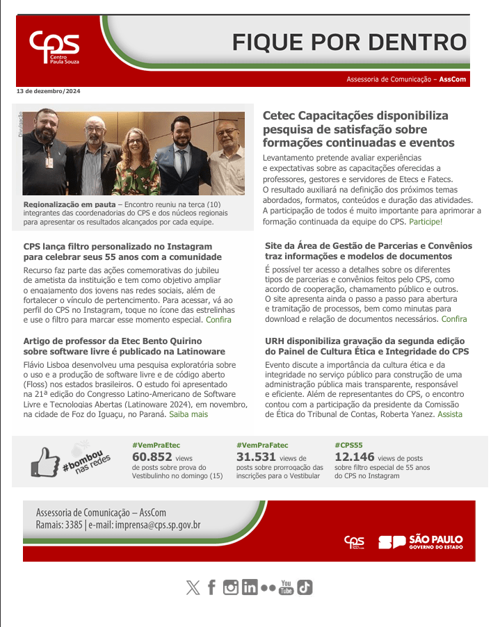 Encontro reuniu nesta terça (10) integrantes das coordenadorias do CPS e dos núcleos regionais para apresentar resultados alcançados por cada equipe.